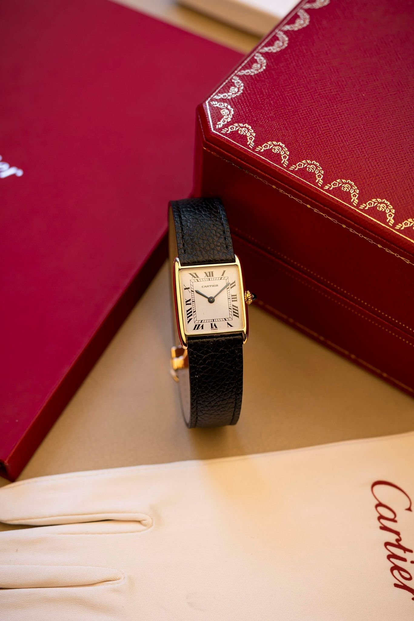 3) 18K. yellow gold watch; Cartier - Paris.