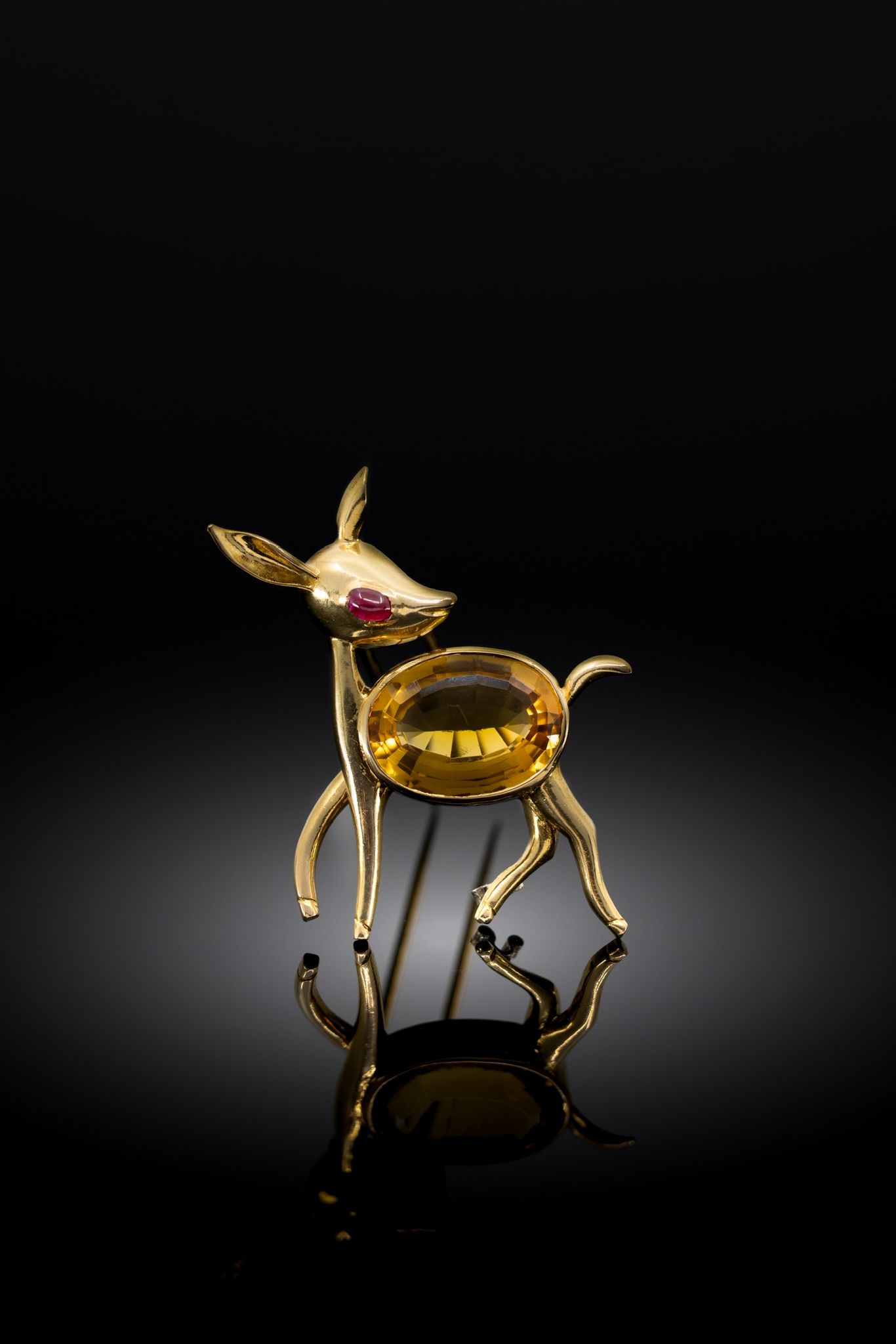 2) 18K. yellow gold brooch, Modernism ca 1960.