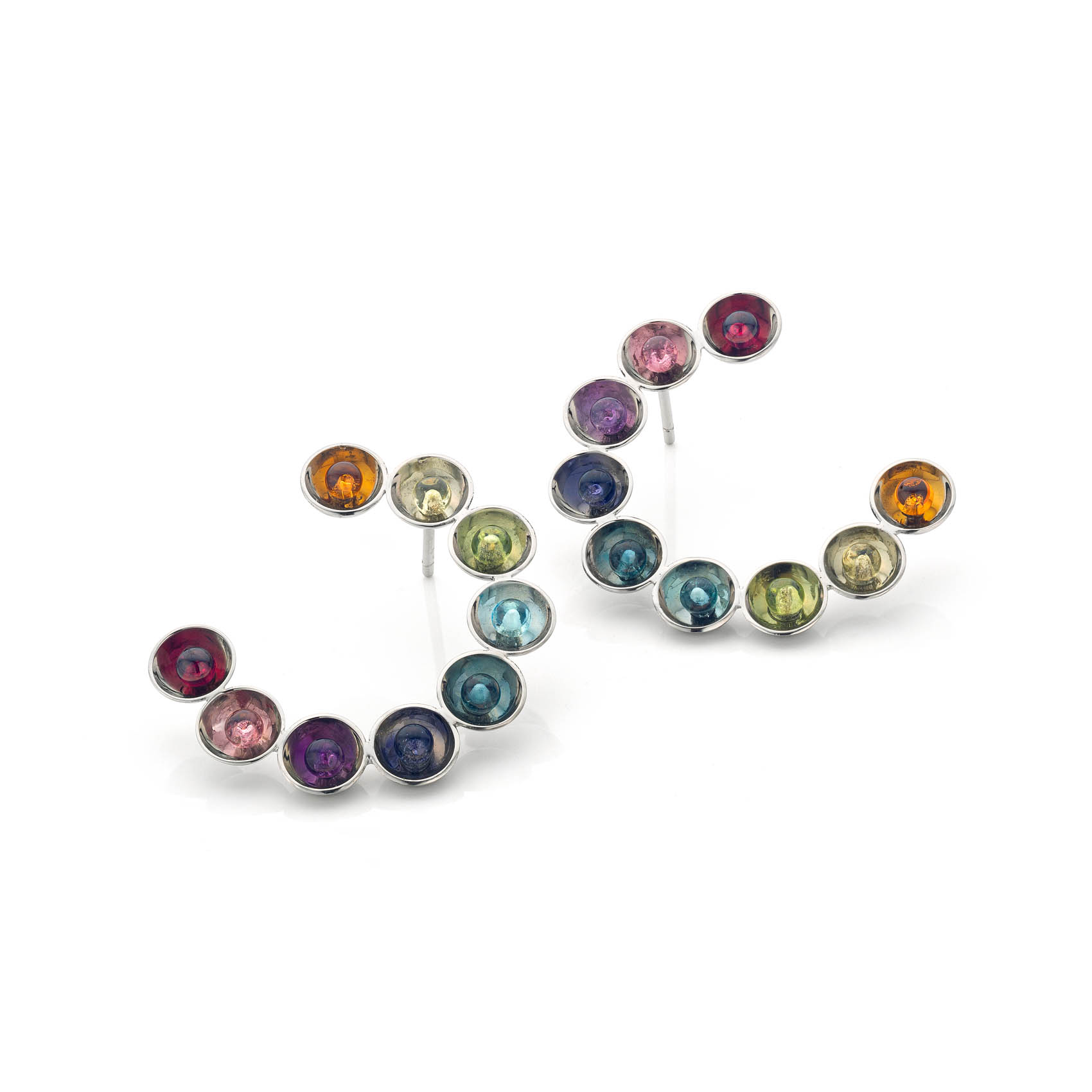 2. 19 karaat ultra witgouden oorjuwelen met een regenboog aan edelstenen.