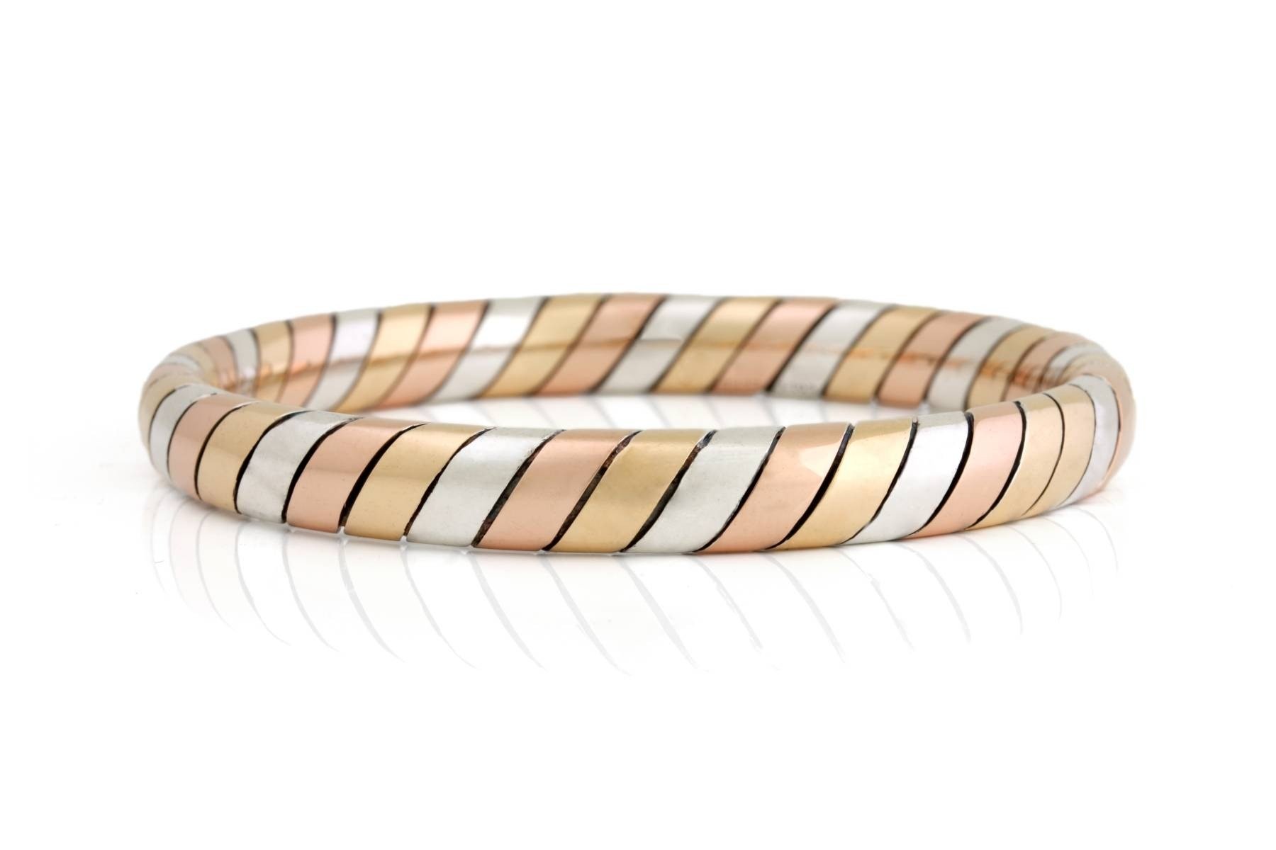 Het vlechtwerk / chevronmotief is zoals o.a. ook een straat met kinkers is gelegd. De armband is vervaardigd in het atelier van Roger Lebenstein in Parijs op 269 rue Saint-Honoré.